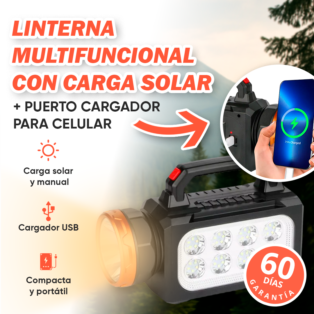 (KIT EMERGENCIA) LINTERNA SOLAR RECARGABLE + CARGADOR DE CELULAR | SOLARO™